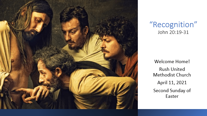 Jesus then appears to a skeptical Thomas a week later, when recognition of the resurrected Lord came when Jesus showed Thomas his wounds.