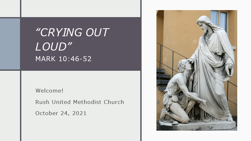 They came to Jericho. As he and his disciples and a large crowd were leaving Jericho, Bartimaeus son of Timaeus, a blind beggar, was sitting by the roadside. When he heard that it was Jesus of Nazareth, he began to shout out and say, “Jesus, Son of David, have mercy on me!” Many sternly ordered him to be quiet, but he cried out even more loudly, “Son of David, have mercy on me!” Jesus stood still and said, “Call him here.” And they called the blind man, saying to him, “Take heart; get up, he is calling you.” So throwing off his cloak, he sprang up and came to Jesus. Then Jesus said to him, “What do you want me to do for you?” The blind man said to him, “My teacher, let me see again.” Jesus said to him, “Go; your faith has made you well.” Immediately he regained his sight and followed him on the way.