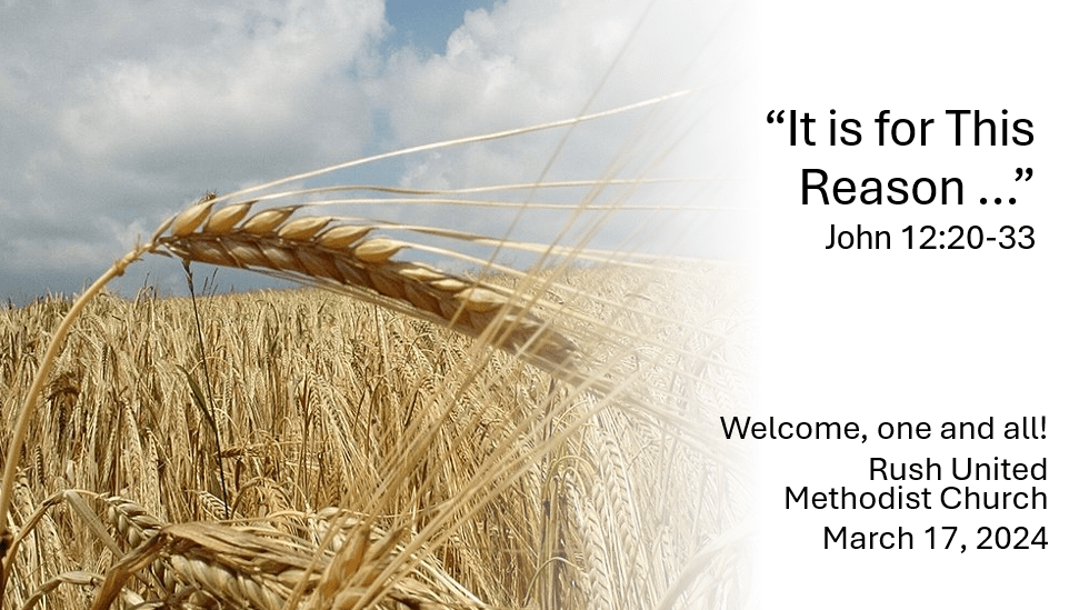 Now among those who went up to worship at the festival were some Greeks. They came to Philip, who was from Bethsaida in Galilee, and said to him, “Sir, we wish to see Jesus.” Philip went and told Andrew; then Andrew and Philip went and told Jesus. Jesus answered them, “The hour has come for the Son of Man to be glorified. Very truly, I tell you, unless a grain of wheat falls into the earth and dies, it remains just a single grain; but if it dies, it bears much fruit. Those who love their life lose it, and those who hate their life in this world will keep it for eternal life. Whoever serves me must follow me, and where I am, there will my servant be also. Whoever serves me, the Father will honor.