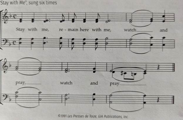 Stay with me. It is as if these were words of Jesus spoken to his drowsy disciples in the Garden of Gethsemane. Remain here with me almost sounds like a plea.